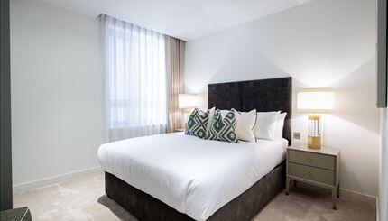 A luxurious interior designed three-bedroom 3rd floor apartment set over 1013 SqFt comprising a large open-plan reception room leading onto a private balcony. The fully integrated kitchen with appliances from Siemens and Miele includes oven and induction hobs, large fridge freezer and dishwasher and wine chiller all inset into composite stone work tops. The apartment has three double bedrooms with the master including an ensuite and a family bathroom. The whole apartment also benefits from comfort cooling.