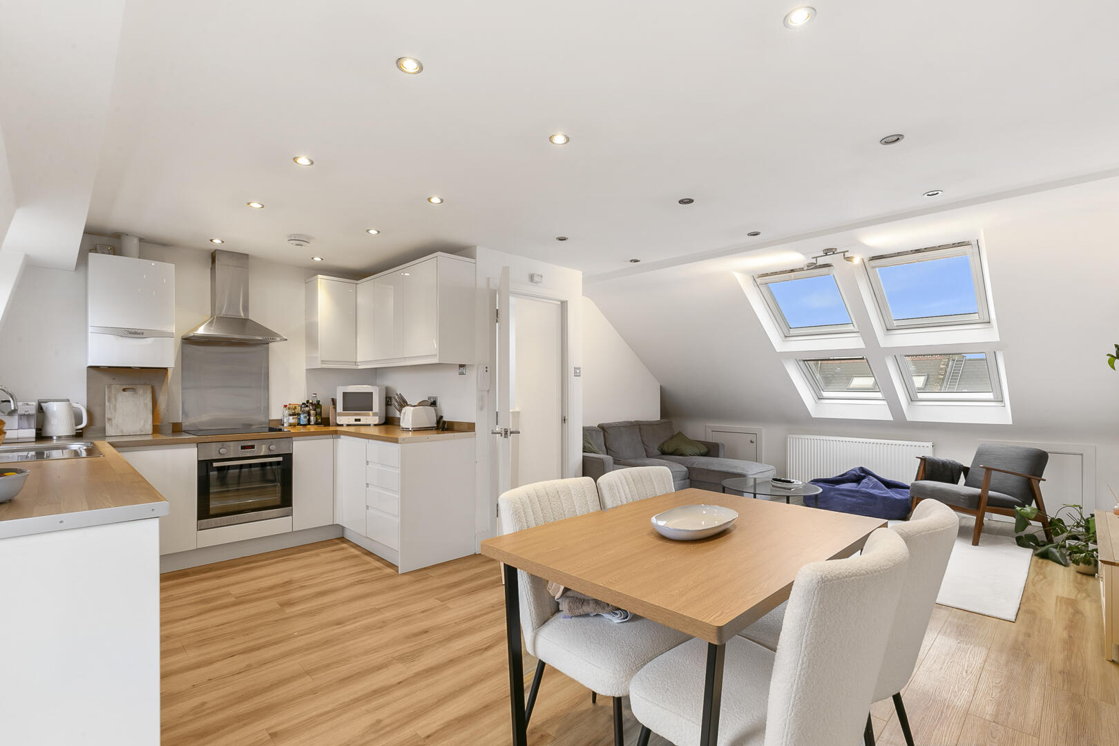 This light filled property extends to over 1000 sq ft and comprises the 2 large bedrooms, 2 bathrooms (1 ensuite) across the second floor and an outstanding 22' x 17'6 kitchen/reception across the full length of the top floor.